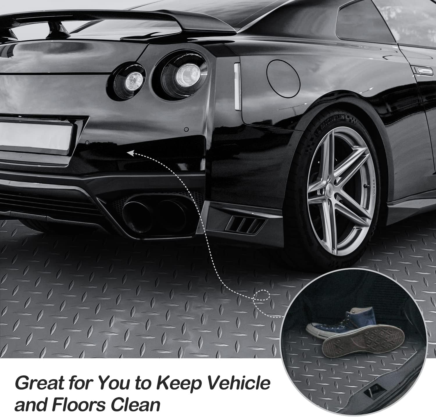 - 360°ANTI-SLIP -- The waterproof garage floor mats are designed with diamond-shaped texture, each anti-slip strip has anti-slip points, strong grip, forming an efficient anti-slip effect to ensure the safety of vehicle parking and walking