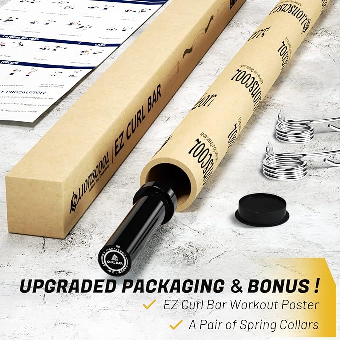 - Lifetime Warranty & Bonus: LIONSCOOL EZ Curl Bar has been rigorously tested to ensure durability and safety. We stand by the quality of our product and offer LIFETIME WARRANTY. So buy with confidence! This bar also comes with a FREE EZ Curl Bar Workout Poster plus a pair of spring collars so that you can plan your workouts like a pro. For anyone who is in the market for a curl bar, LIONSCOOL EZ Curl Bar is definitely the 'Bang for Buck' bar for you.