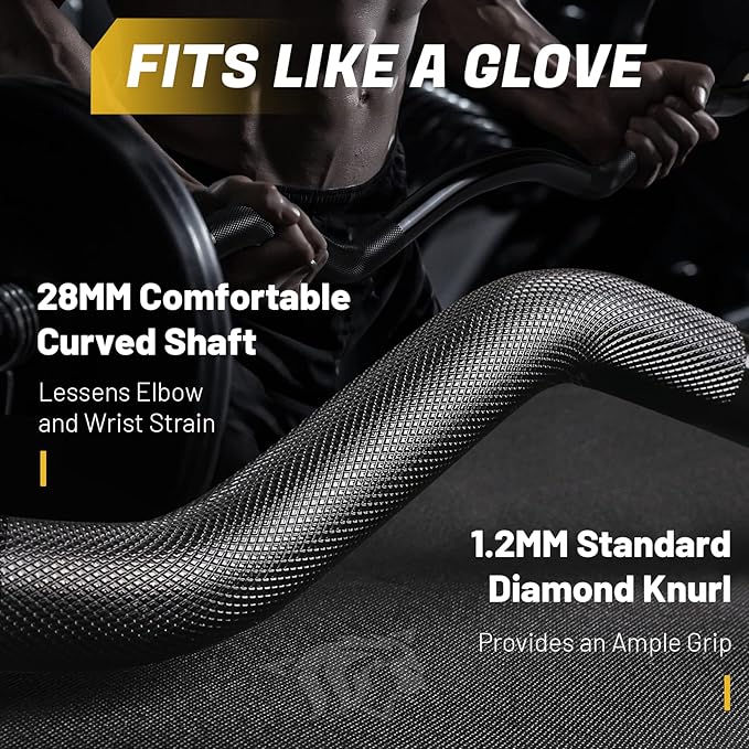 - Comfortable Curved Shaft: As one of the most critical areas of a curl bar, the 28mm bent shaft of this bar is comfortable and very effective. The cambered angles on LIONSCOOL EZ Curl Bar place your hands in a more natural position that lessens elbow and wrist strain. More importantly, the bends provide a taxing and targeted workout to the biceps and triceps, activating your muscles the way theyโre supposed to.
