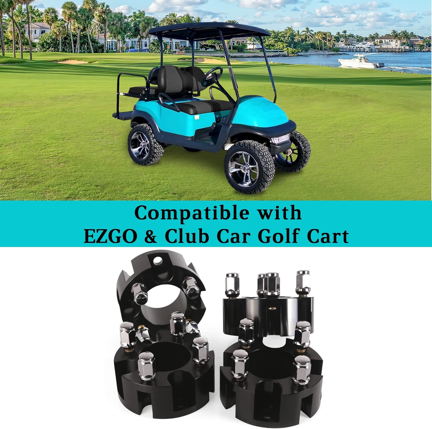 - 2 inch wheel spacers for EZGO, Club Car & Yamaha golf carts with 4×4 bolt pattern and 1/2-20" studs which are heat-treated and hardened for resisting corrosion and rust.