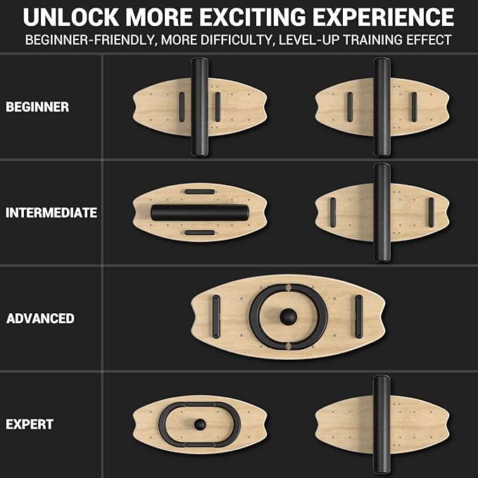 - A Must-Have for Fitness Enthusiasts: Keep your body fit and your muscles well trained by combining this balance board with other sports like weight training or aerobics, making your workouts more fun and dynamic. It is also a great helper to improve balance and stability in athletics such as martial arts, dance, gymnastics, etc.