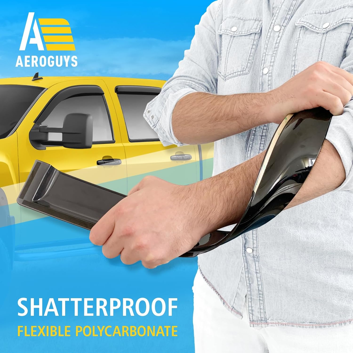 - Incredibly Durable AEROGUYS Auto Window Deflectors β They are made with strong and tough polycarbonate which is clear and scratch-resistant. They also provide UV protection making your ride more comfortable under all weather conditions.