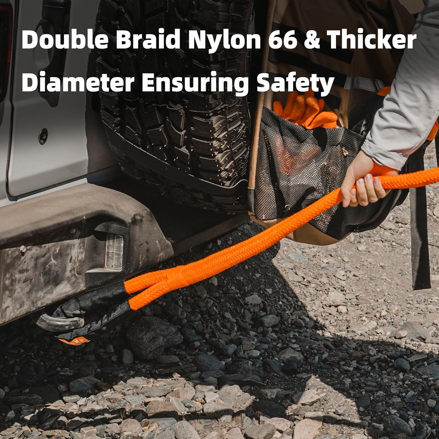 - 【WHY YOU NEED IT】 Four-wheelers got stucked in sticky mud, Overlanders lost tire traction in sand dunes, Rock Crawlers lacking of engine torque to go over large boulders. A set of ALL-TOP Kinetic Recovery Rope will settle all these up by its Kinetic Snatching Force. And such perfect recovery gear is just kept in a rain-proof easy carry bag.