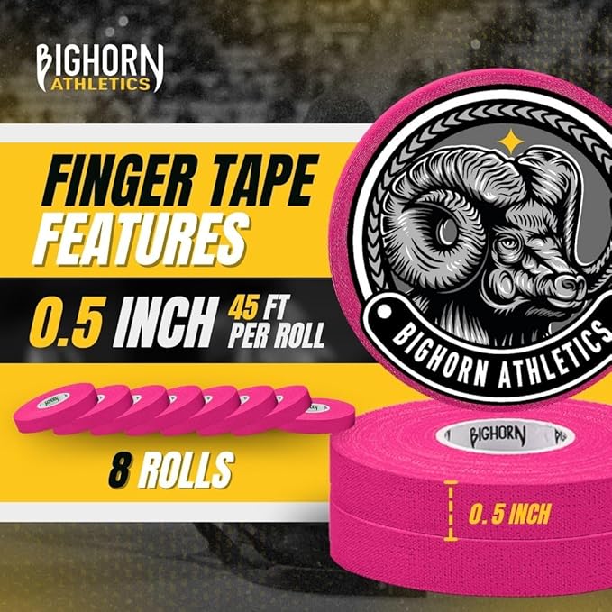 Bighorn Athletics Jiu Jitsu Finger Tape, Rock Climbing Tape | Multipurpose for Sports & Injuries: MMA, Volleyball, Football, Basketball, Tennis, Golf, Hands & Toes, 0.5-Inch x 45-feet, 8-Rolls, Pink
