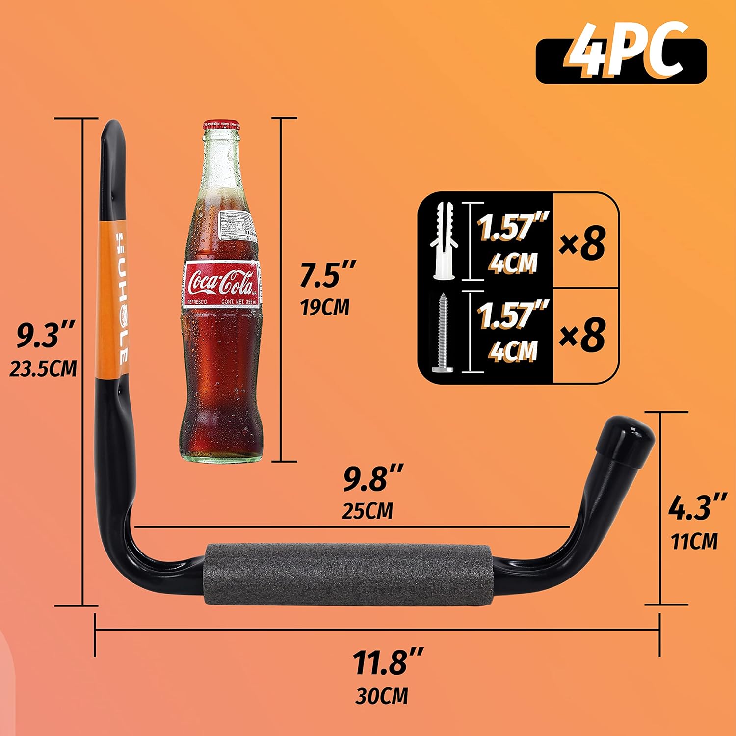 HUHOLE Ladder Hooks for Garage Wall, Wall Mount Ladder Brackets with 9.8" Jumbo Arm, Utility Hooks for Bike, Folding Chair, Bulk Items