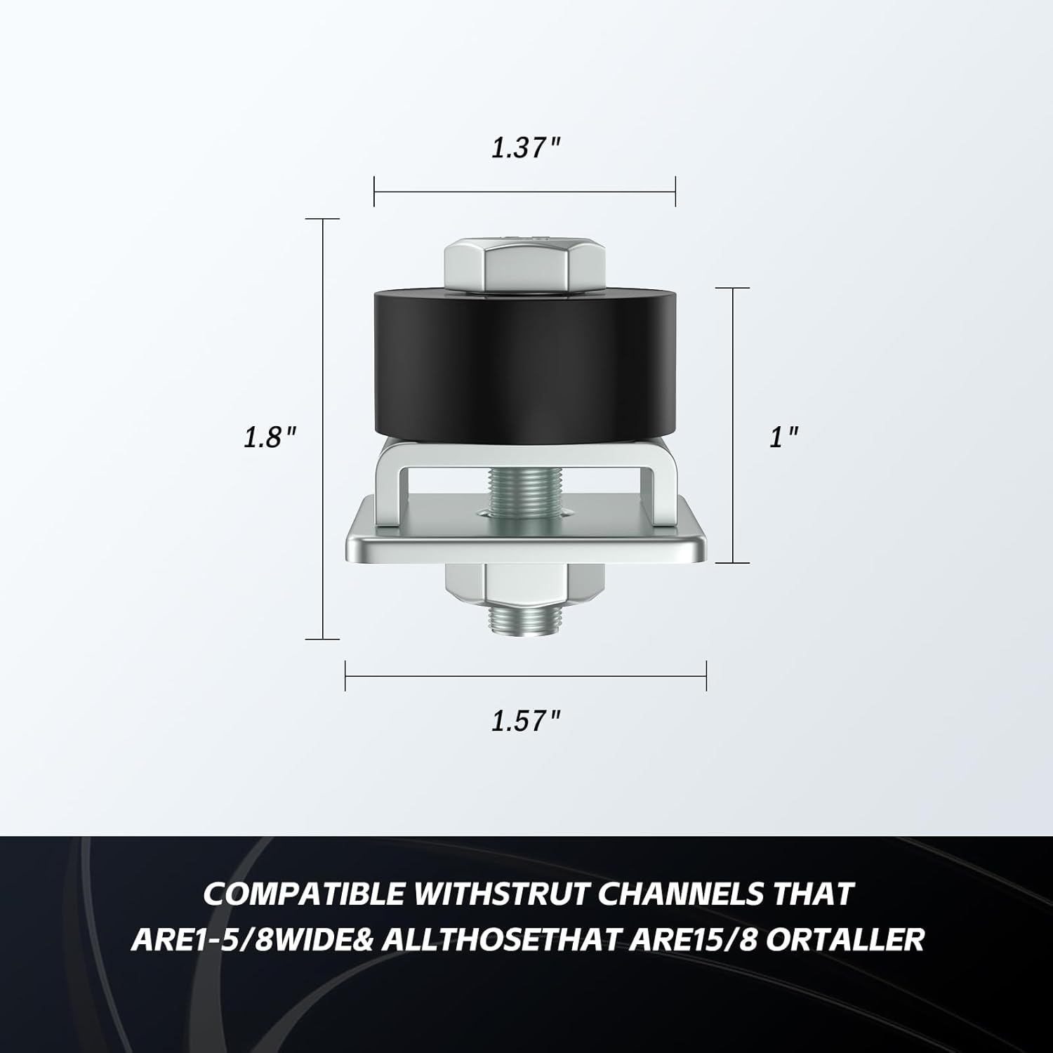 - 【Special design】 Trolley Roller Limit for use with 1-5/8" Wide and All 1-5/8" or Taller Strut Channel, The stopper is used to restrict the movement of the trolley roller and keep the trolley assembly from detaching from the strut channel.