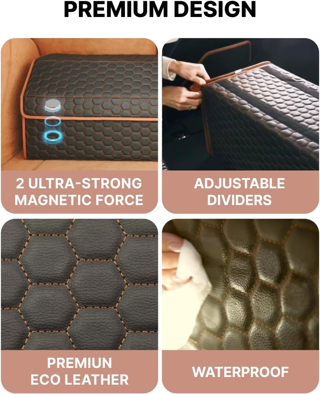 - SUPER EASY TO USE: Our collapsible trunk organizer sets up in just 2 minutes and has strong leather handles for easy transportation. Also, you can effortlessly clean this large trunk organizer for SUV with a damp cloth to remove any dirty stains!