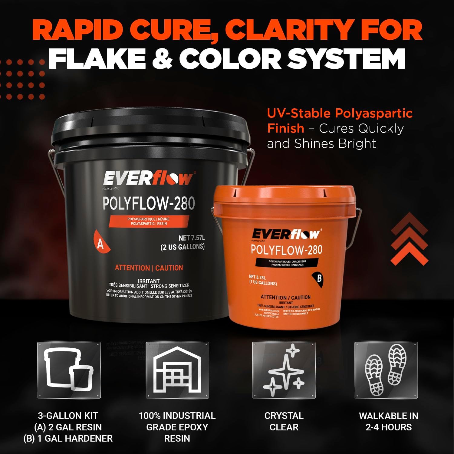 MPC-280 Polyaspartic Floor Coating Kit – 3 Gallon Clear High Gloss Polyurea Garage Floor Coating – Fast-Cure, 2:1 Mix Polyaspartic Top Coat for Concrete, Industrial & Commercial Surfaces