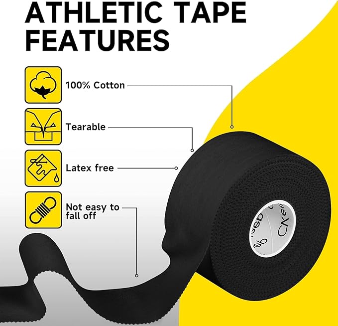 - Applicable to Every Sports Scene: The black athletic tape is tough enough to fix and support the muscles well.CKeep turf tape is great for boxing and care your fingers for climbing.CKeep black boxing tape is also capable of wrapping baseball bats, hockey balls and hockey sticks.