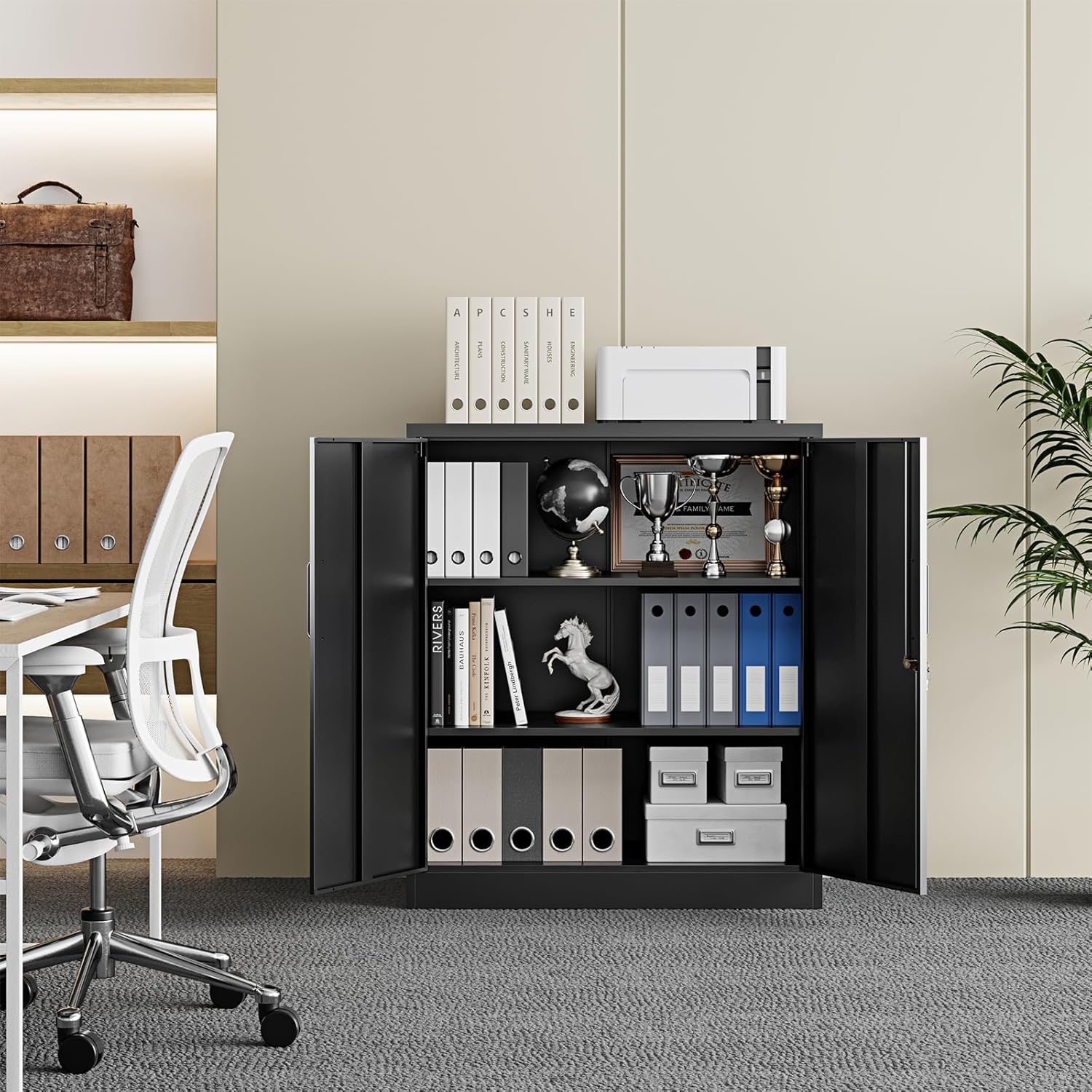 - 『LARGE SPACE DESIGN』In addition to being a great choice for storing a large number of items, this steel cabinet has an interior design that adds extra space to any room and opens the door to your home, ideal for protecting your products from Light exposure, temperature, dirt and dust.