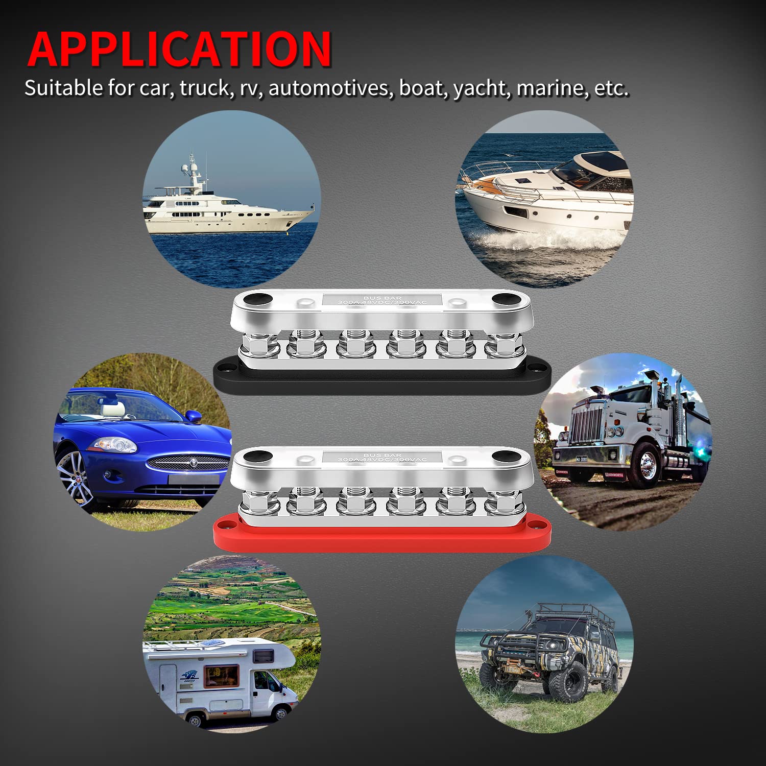 - 【Application】 - This 300A bus bar will have better performance in high current systems. The package includes one positive and one ground distribution block, suitable for automotive, car, marine boat, etc.