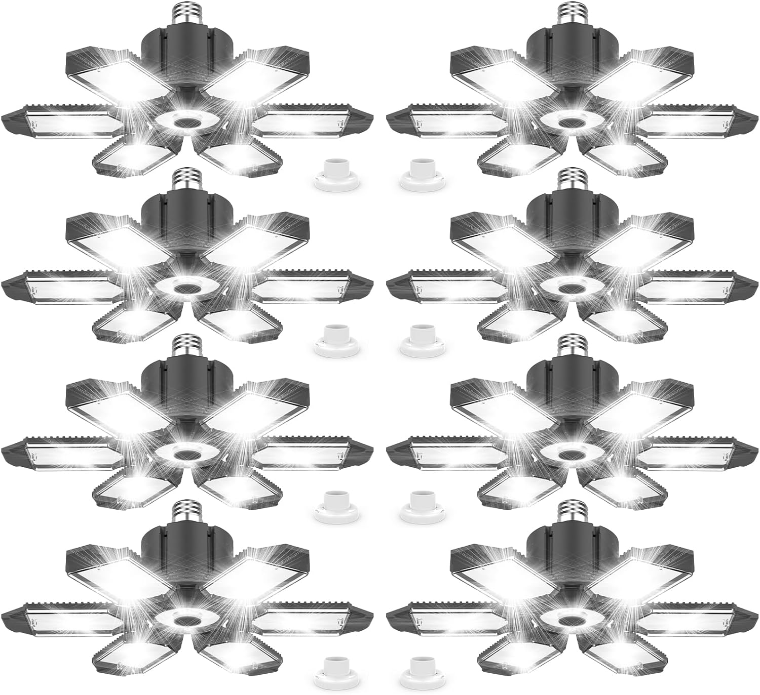 8 Pack 220W Garage Light Ceiling Led Deformable LED Shop Lights for Workshop E26 E27 Screw in Garage