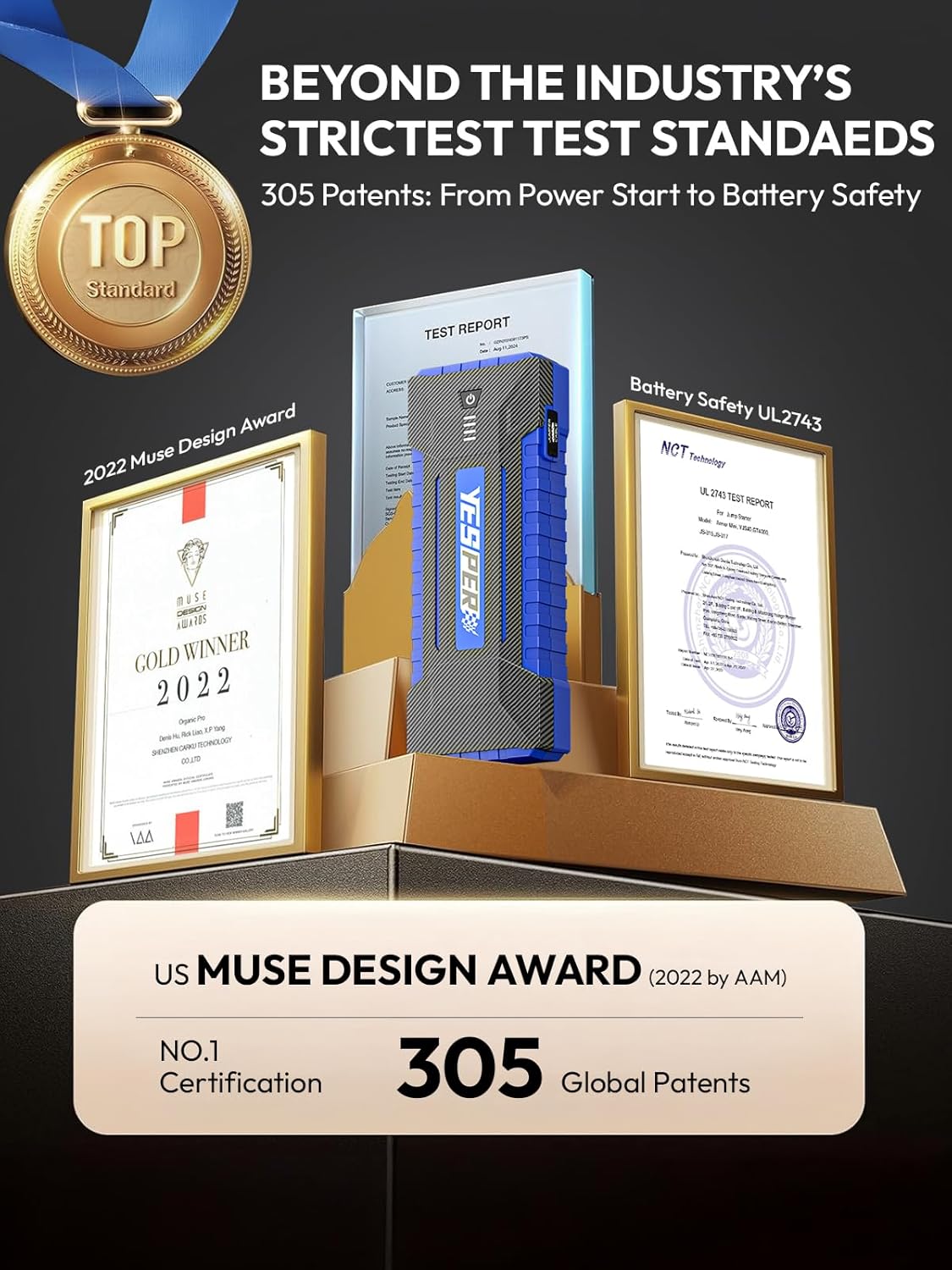 YESPER 2160A Car Jump Starter Portable,Battery Jumper Booster Pack, Boost Jump Box for Most 12V Vehicle (Up to 9.0L Gas/7.0L Diesel Engine), DSLI Safe Tech, PD 15W Fast Charge & DC 15V Port