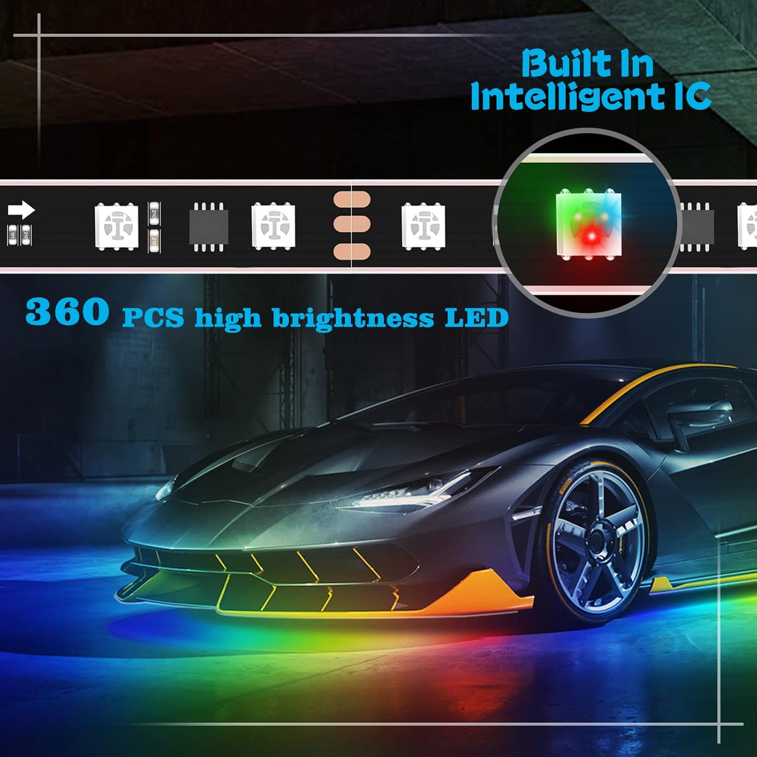 - 212 Color Chasing Underglow Lights : Dream color design, looks like more cool than other rgb color underglow led strip. Special design by adding IC in strip lights, you can control a variety of Colors, Brightness and Chasing Speed as you want. You also can Mark Your Favorite Chasing Effect and only display the effect you mark. If you donโt want the chasing mode, you can DIY a Static Color for lighting.