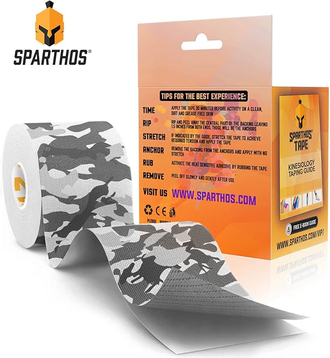 - ✅ WATERPROOF AND LIGHTWEIGHT TECHNOLOGY - When properly applied, SPARTHOS TAPE can stay on through 3-5 days of showering, HIIT workouts, gym sessions, and beyond. Our athletic tape does not irritate the skin - it's hypoallergenic and latex-free.