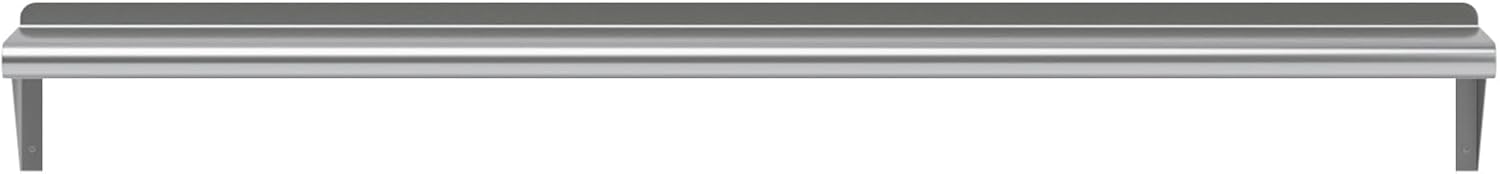 - 8 in. x 60 in. Stainless Steel Wall Shelf with 6 in. High Mounting Brackets. This heavy-duty multifunctional stainless wall shelf is made with 18 gauge stainless steel and can hold up to 205 Lbs of weight. The design features a 1 in. backsplash and bullnose edge. It's made with durable welded corners and support brackets.