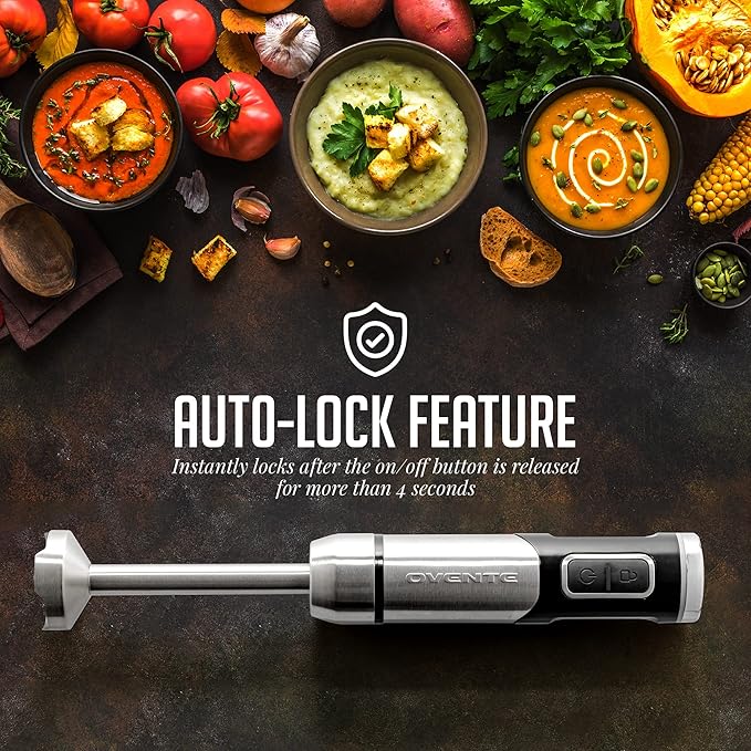 - SAFE & EASY TO USE β Featuring an auto-lock function that automatically locks after the on/off button is released for more than 4 seconds, ensuring added safety. The one-touch operation gives you full control over the speed, allowing you to easily blend a variety of ingredients. When charging, the indicator light turns blue to let you know the blender is fully charged and ready for use.
