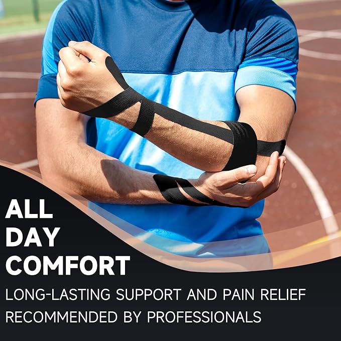 - HOW DOES IT HELP YOU? - The kinesiology tape helps relieve stress and pain in joints and muscles, improves blood and lymphatic circulation, increase your athletic performance.