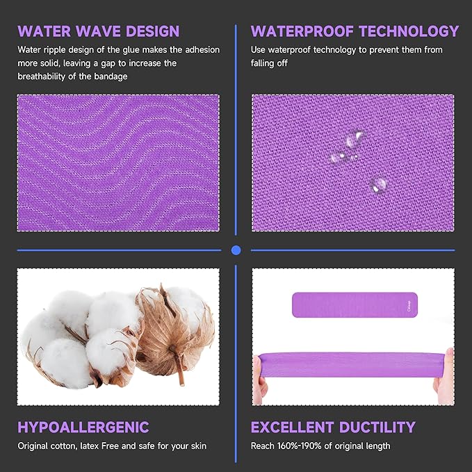 CKeep Uncut Kinesiology Tape(2 Rolls), Original Cotton Elastic Premium Athletic Tape,Latex Free Hypoallergenic, 2inch x 16ft, Purple
