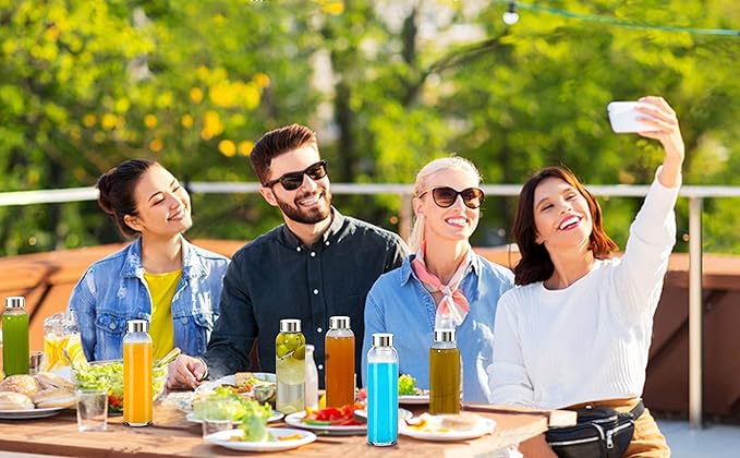 - ECO-FRIENDLY Clear Glass Bottles - Our drinking glass bottles, including juicing bottles, are made of good-grade material, sturdy, no odors, and BPA free. Glass bottles with airtight lids ensure freshness.The 18 oz glass water bottle is ideal for fruit juice, water, drinks, brew, kombucha, etc.