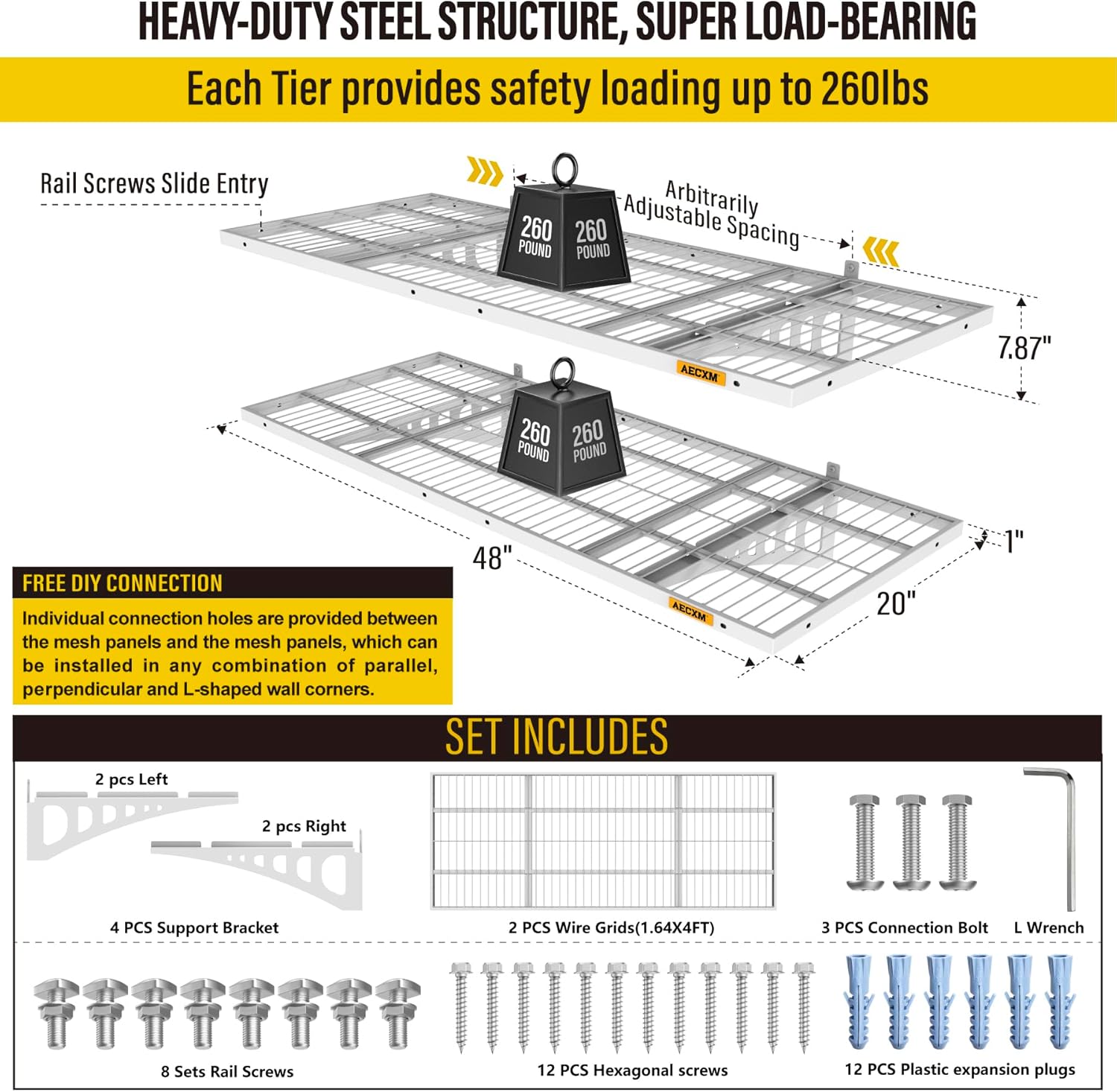 - 560lbs Load Tested: Our garage wall shelves undergo rigorous testing, with each individual unit supporting 280 lbs. The 2-pack (1.64x4ft) offers a total weight capacity of 560 lbs