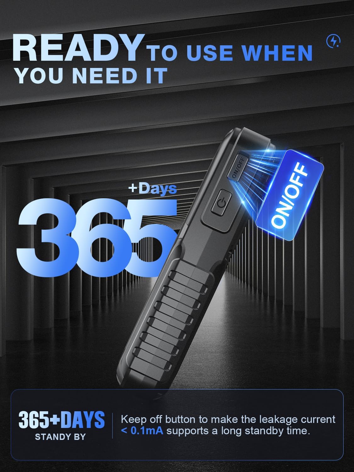 - 【LCD Screen &4 light modes】The large screen displays data compared to traditional car jump boxes or car jumper cables kit, it's very user-friendly.TP20PRO jumper pack equip super bright LED light which support 4 modes(Solid, SOS, Alert, Red warning). It is useful in many situations, such as checking for engine failure at night, outdoor adventures / accidents, calling for help, warning of other vehicles, etc.
