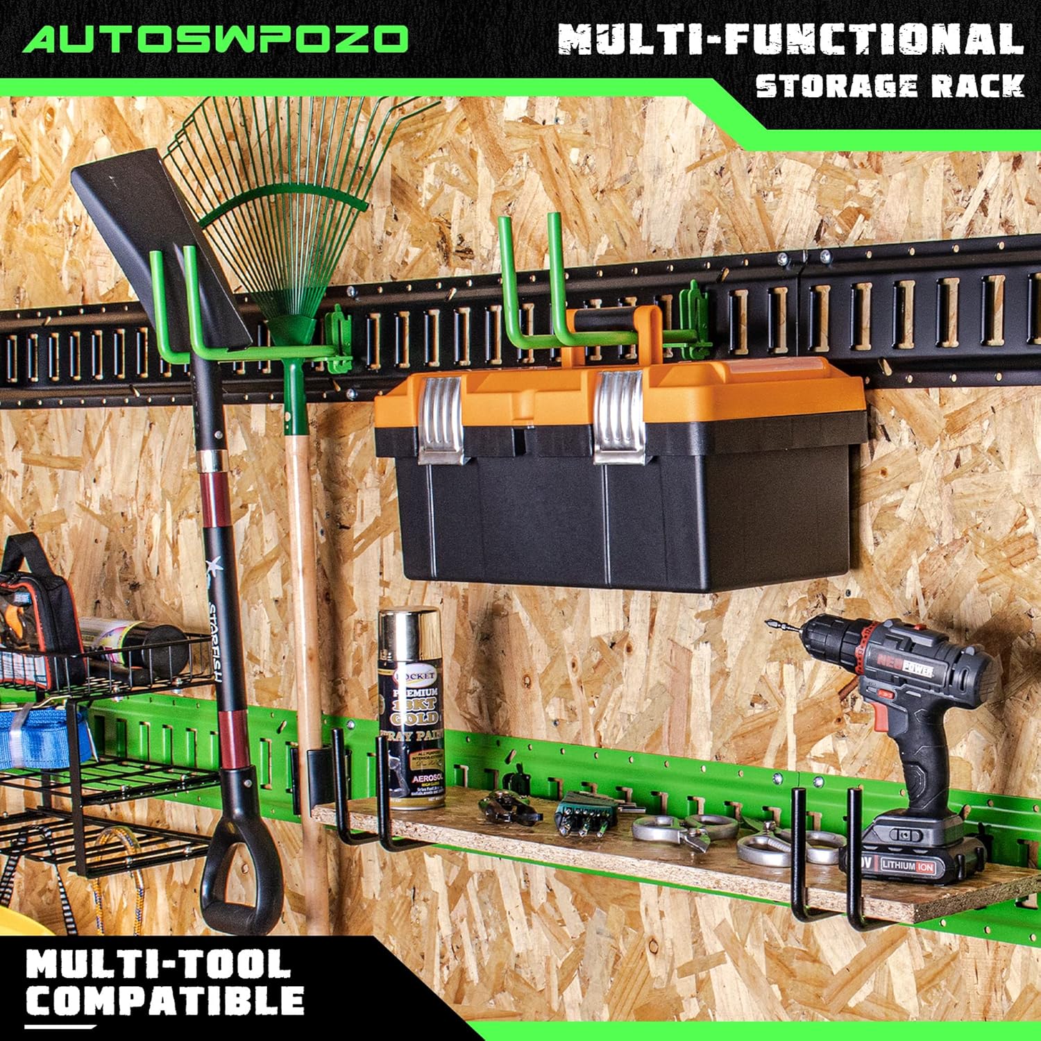 - 【MULTI-TOOL COMPATIBLE】 Store multiple long-handled tools, such as rakes, shovels, brooms, cargo bars, garden tools and other hand tools. Can also hang ladders, hoses, ropes, bike, extension cords, jackets and more. Only suitable for E-track tie down rails or singles.