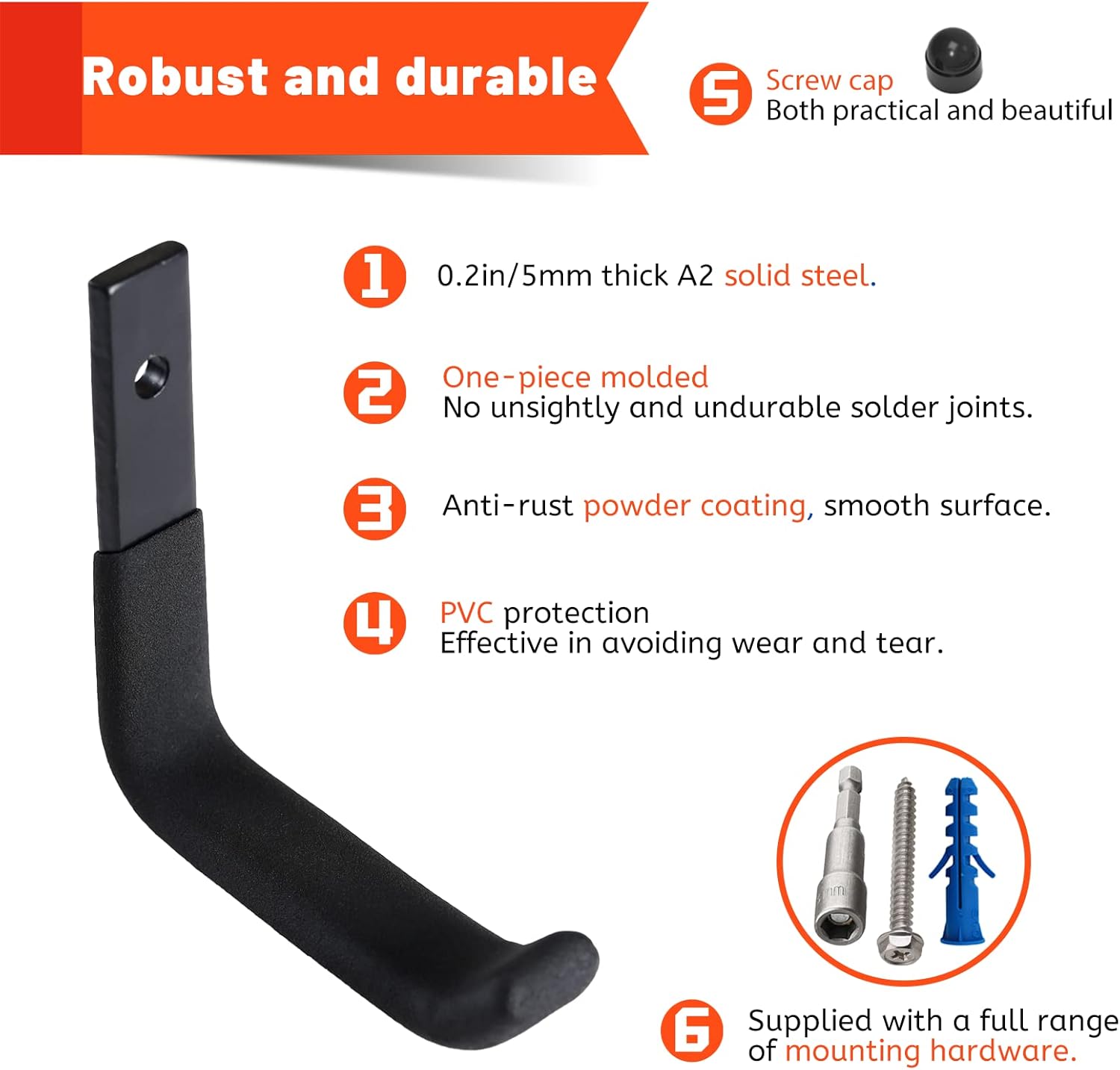 - ▶【STRONG & SECURE】Garage hooks is made of heavy-duty steel. Simple J-shape & no-weld is suitable for securely holding all types of items. 88 lbs(40kg) safe working load.