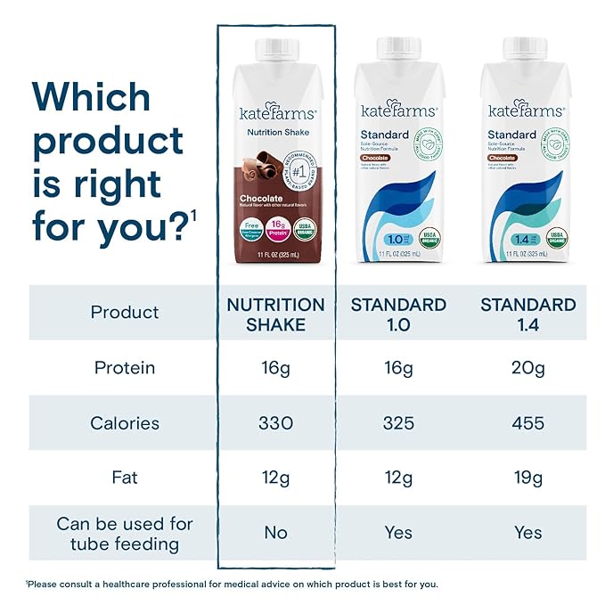 KATE FARMS Organic Nutrition Shake, Chocolate, 16g protein, 27 Vitamins and Minerals, Protein Meal Replacement Drink, Plant Based, 11 oz (6 Pack)