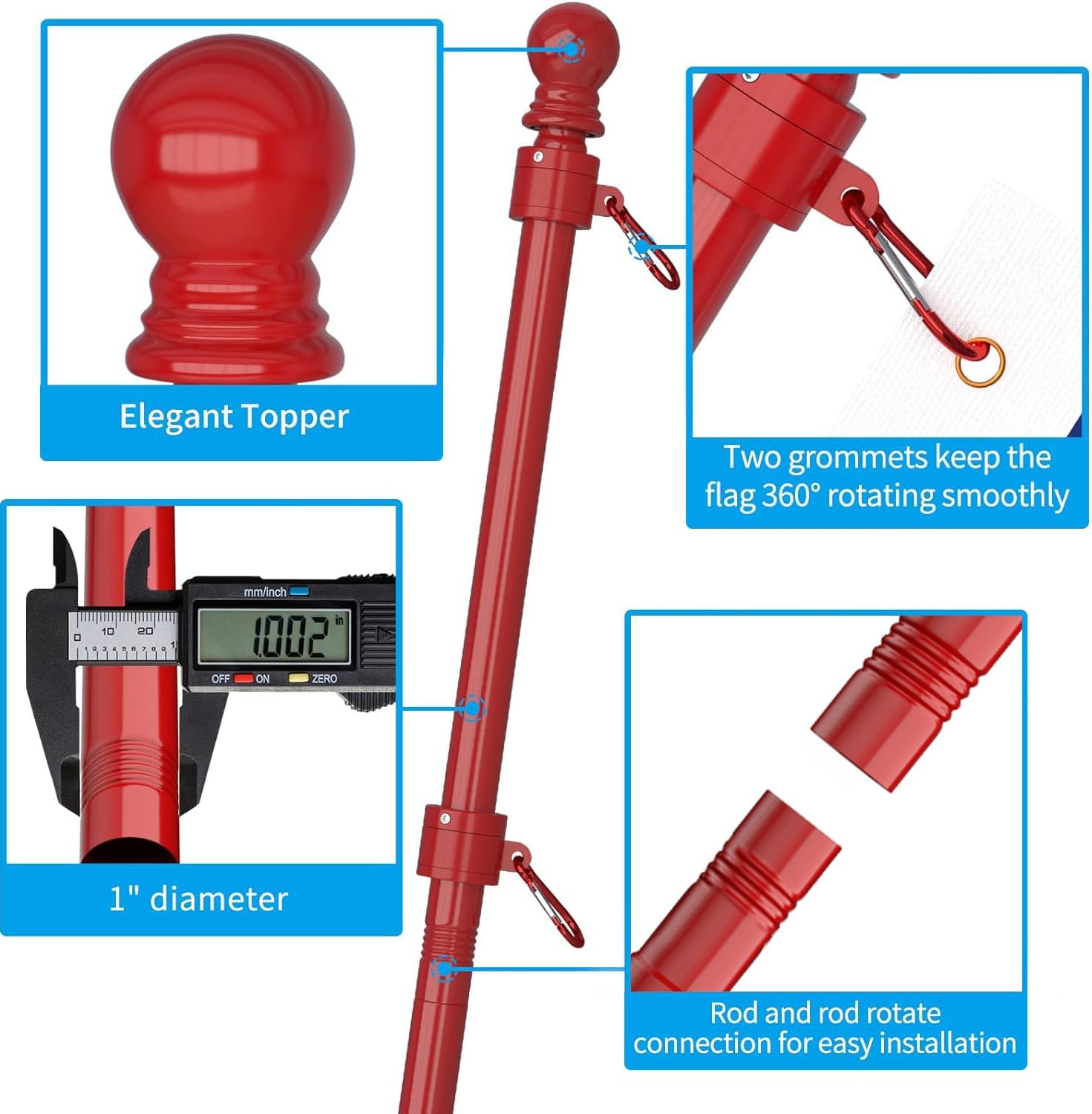 ZMTECH Flag Pole - Upgraded Bracket, 6 FT Stainless Steel Flag Poles for Outside House, Residential or Commerical, Tangle Free Flag Pole Kit for American Flag (Without Flag, Red)