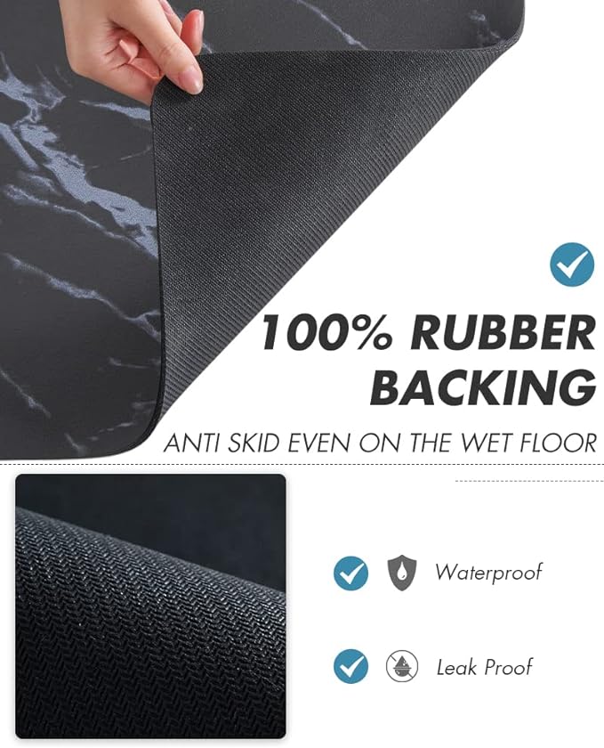 - RUBBER BACKING: Durable rubber backing stop water seeping underneath and leave stains on the countertop