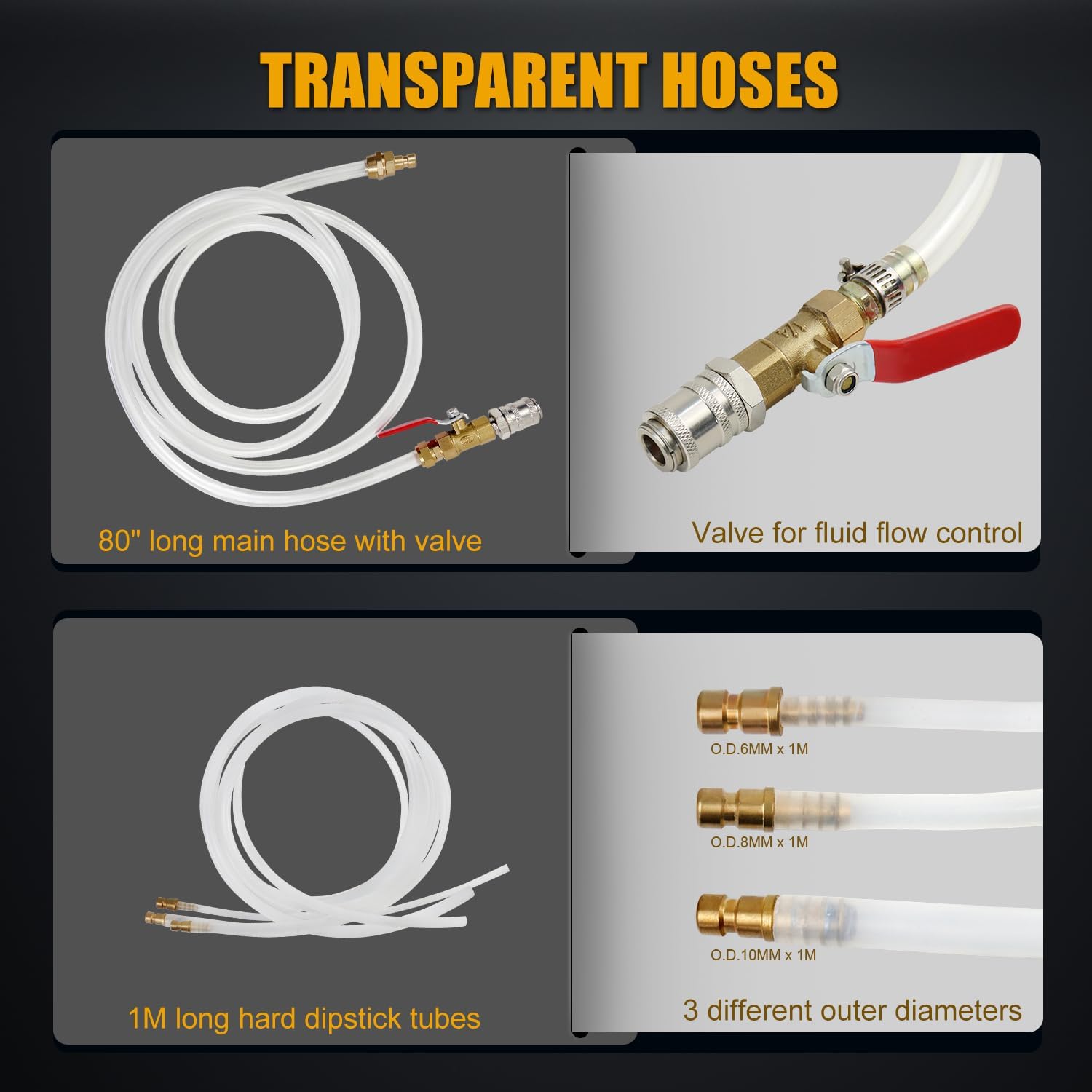 - Wide Application: Transmission fluid pump set contains 3 PCS 1 M long hard dipstick tubes (O.D. 6 MM 8 MM 10 MM). They can be inserted into various pipes or tanks such as engine dipstick water tank, and used for replacing oil, differential fluid, transfer case fluid, gear oil, power steering fluid, and other non-corrosive and low concentration liquids. Greatly improve the efficiency of maintaining vehicles, jet skis, lawnmowers or other small engines, no need to crawl around under lifting vehicles
