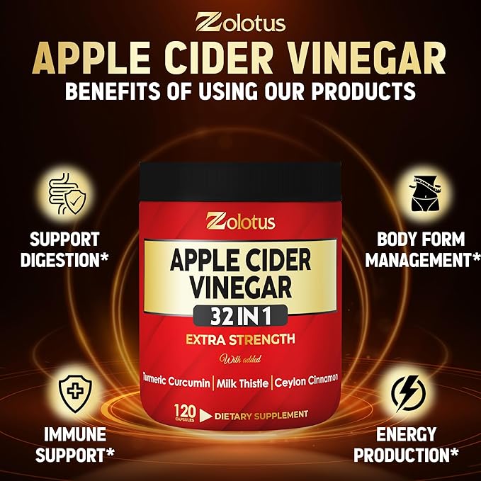 Zolotus 32 in 1 Apple Cider Vinegar Capsules with Turmeric, Cinnamon, Milk Thistle, Elderberry, Quercetin for Support Digestion, Immune 120 Capsules