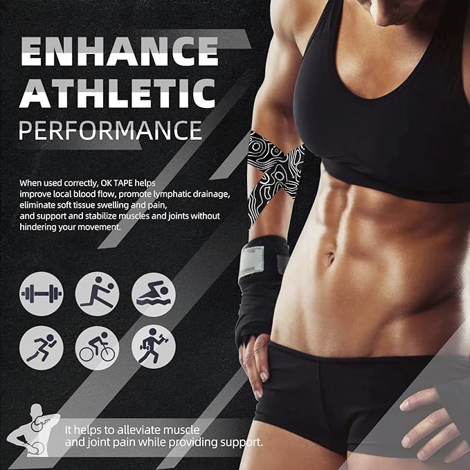 - Unleash Your Potential: Our kinesiology tape is designed to help you achieve your fitness goals; Whether you're a pro athlete or just starting out, our tape provides support for high-impact sports like crossfit, running, weight training, and more