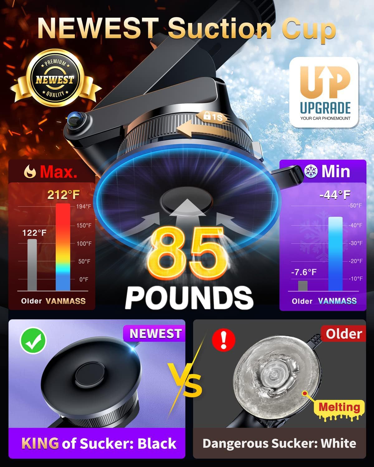 - ăPro VersionďźVANMASS's Best ChoiceăVANMASS has been dedicated to car phone holder for 8 years, always leading the car holder industry in all aspects: safety, stability, durability, compatibility, multi-scene adaptability,climate friendly. The pro version mount enables the cutting-edge design team to create the best choice for customers- highest rating, most customers' preference, EU Intellectual Property Patent (No.007708805-0001), Military Grade Cert (No.GZMR220601855501), CP65/REACH/ROHS