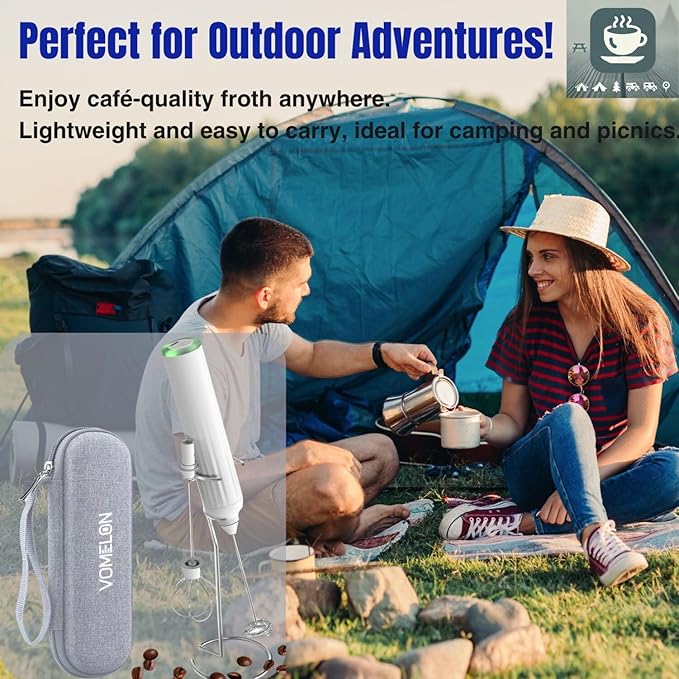 - 【Enjoy creamy froth in seconds】 With VOMELON milk frother handheld, you can whip up smooth and silky milk foam for your favorite beverages in minutes. Whether you want to make a latte, cappuccino, hot chocolate or protein shake, this electric whisk will help you create a rich and delicious foam every time.
