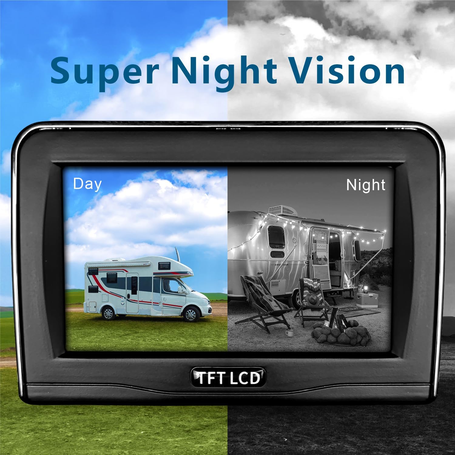 - Stable Signal Transmission and Wide Application--After upgrading the internal chip, this trailer backup camera with monitor has more stable signal transmission, lower delay and longer transmission distance, which can be up to 328ft/100m in empty place. You can use this rv backup camera kit on RV, horse trailers, boats, trucks, etc.