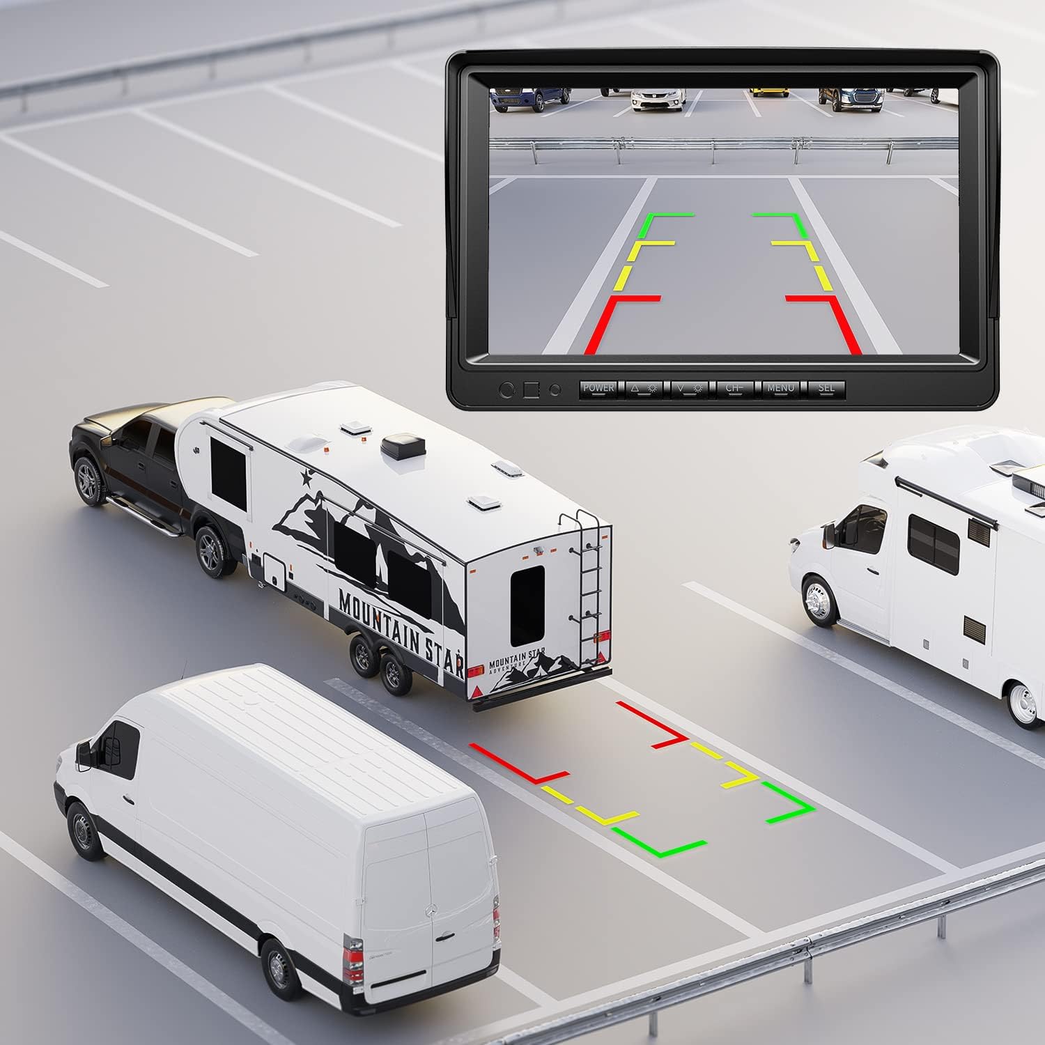 - HD Split Screen IPS Monitor: The split-screen display can show images from multiple cameras at the same time, reducing blind spots in your field of view and making your driving and reversing more confident and safe. Split Mode: Full Screen, Dual Split Screen, Triple Split Screen, Quad Split Screen.
