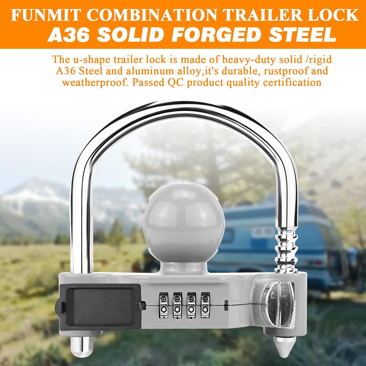 Funmit Trailer Lock Universal Hitch Lock with Combination Lock, fit 1-7/8", 2", 2-5/16" Coupler, Camper Accessories for Travel Trailers Boats Trucks Rvs Grey