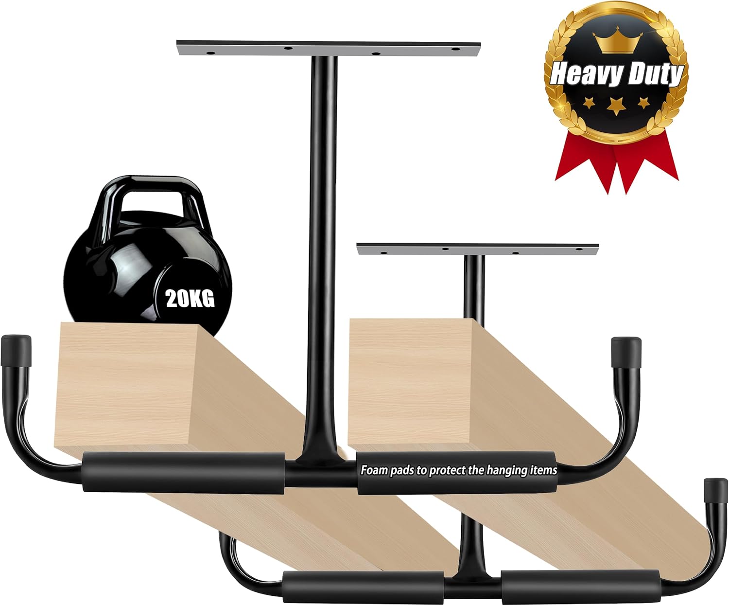 - Safe and Reliable: The double arm ceiling hook is padded with EVA foam and black โPowder Coated finish of protection against rust and corrosion, ensuring the longevity of the hook and the safety of your stored items.