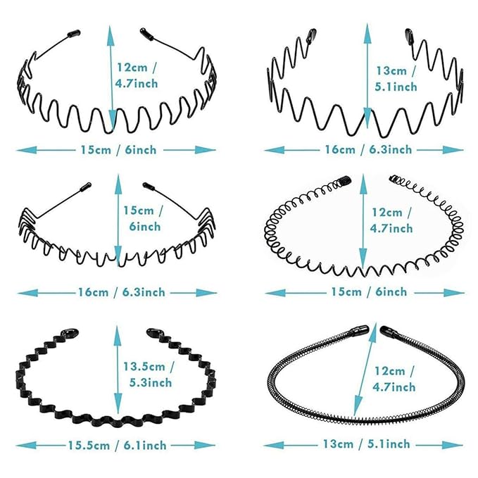 Metal Headbands for Men Fashion Headband for Women, Unisex Wavy Hair Bands Outdoor Sports Head Bands Simple Elastic Non-Slip Hair Accessories (6 Pack)
