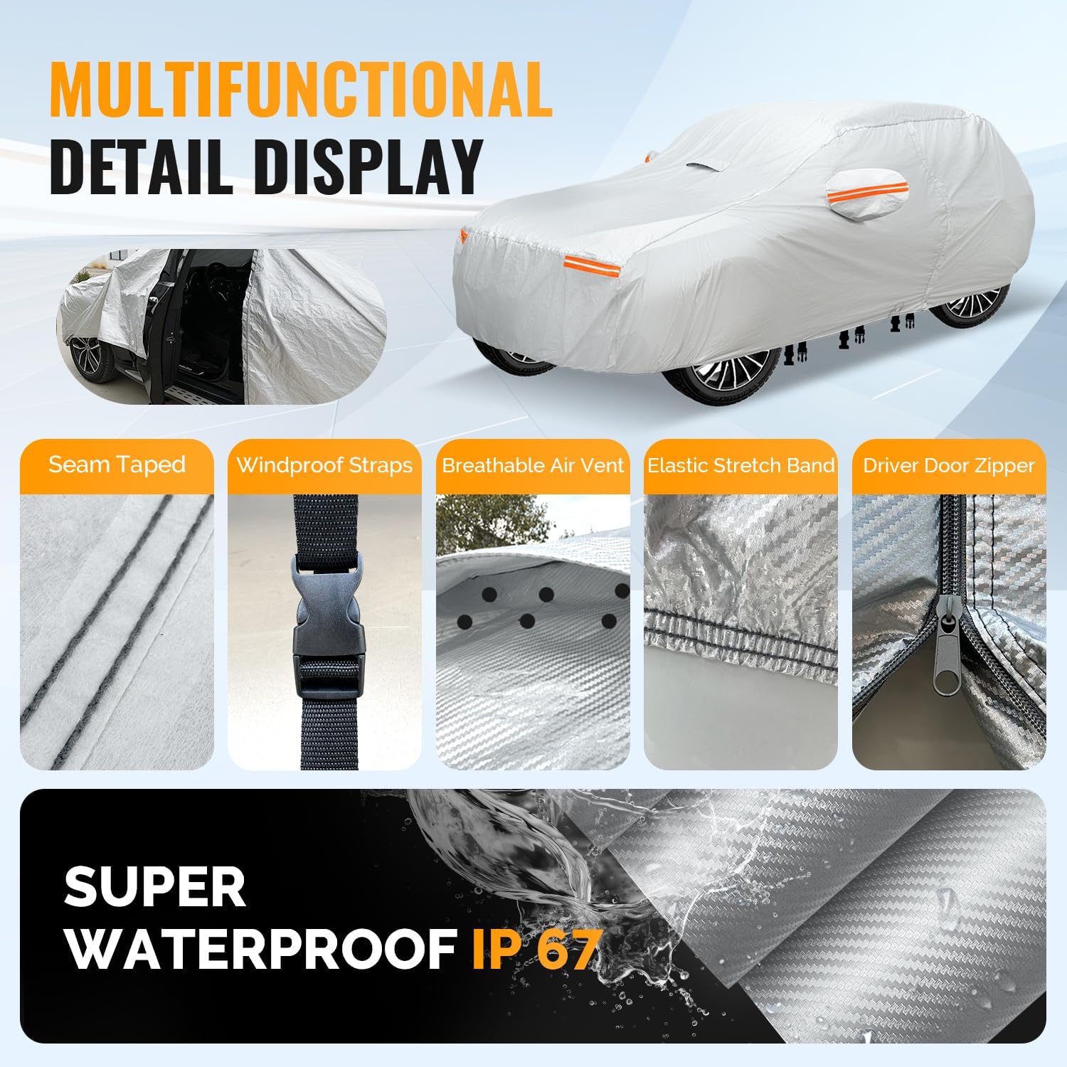- Coverage : Full exterior coverage for cars, sedans, SUVs, and trucks