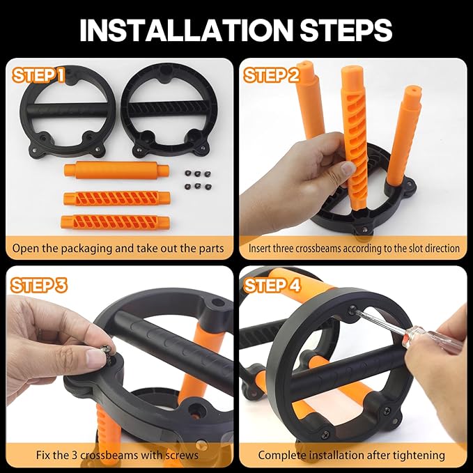 - AB Roller and Push Up Bars - 2-in-1 Abdominal Exercise with ergonomic design, offers stronger support and sturdiness. Push up roller wheel greatly enhance the stability. Solid rubber wheel, it rolls well and quietly.