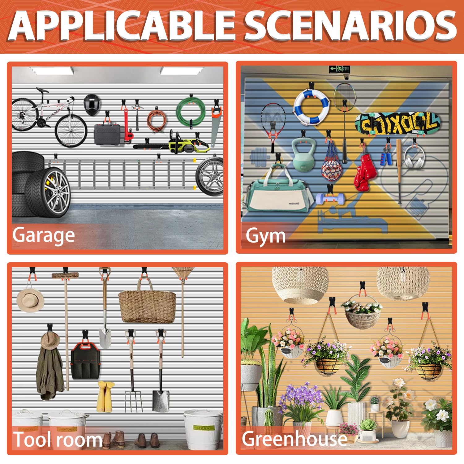 - Easy to Install and Space Saving: Slat wall hanging hooks fit standard slat wall like Proslat, Handiwall, Crownwall, etc., you can directly place storage hooks to both sides of the panel groove, fix garage hooks for hanging into the groove on the slatwall panel then press slat wall hanging hooks down then the wall hooks will fit the slat wall perfectly. Then you can move slat wall accessory to anywhere you want,saving you time and effort