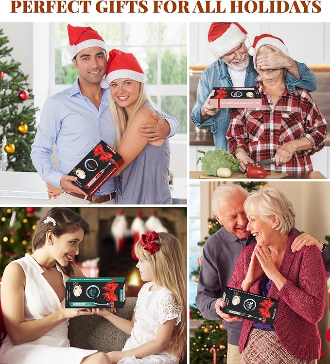 - 🎁【Gift First Choice】Our handheld coffee frother comes with well-designed outer packaging and premium quality, small and exquisite, making it an exquisite gift for women or men. Ideal gift for any occasion, such as Valentine's Day, Mother's Day, Christmas and birthday gifts. The power of the coffee mixer is high when it is working, and liquid may be splashed. Please use a taller and larger container to prevent the liquid from splashing on the table, clothes or other places.