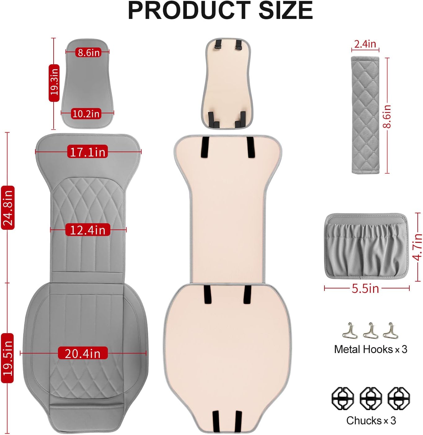 - Package Includes:car seat cover*1, car pocket organizer*1๏ผcar seat belt pad*1,metal hook*3, chuck*3,installation manual * 1.Please contact us if you have any questions about the product, and we will reply you within 24 hours.