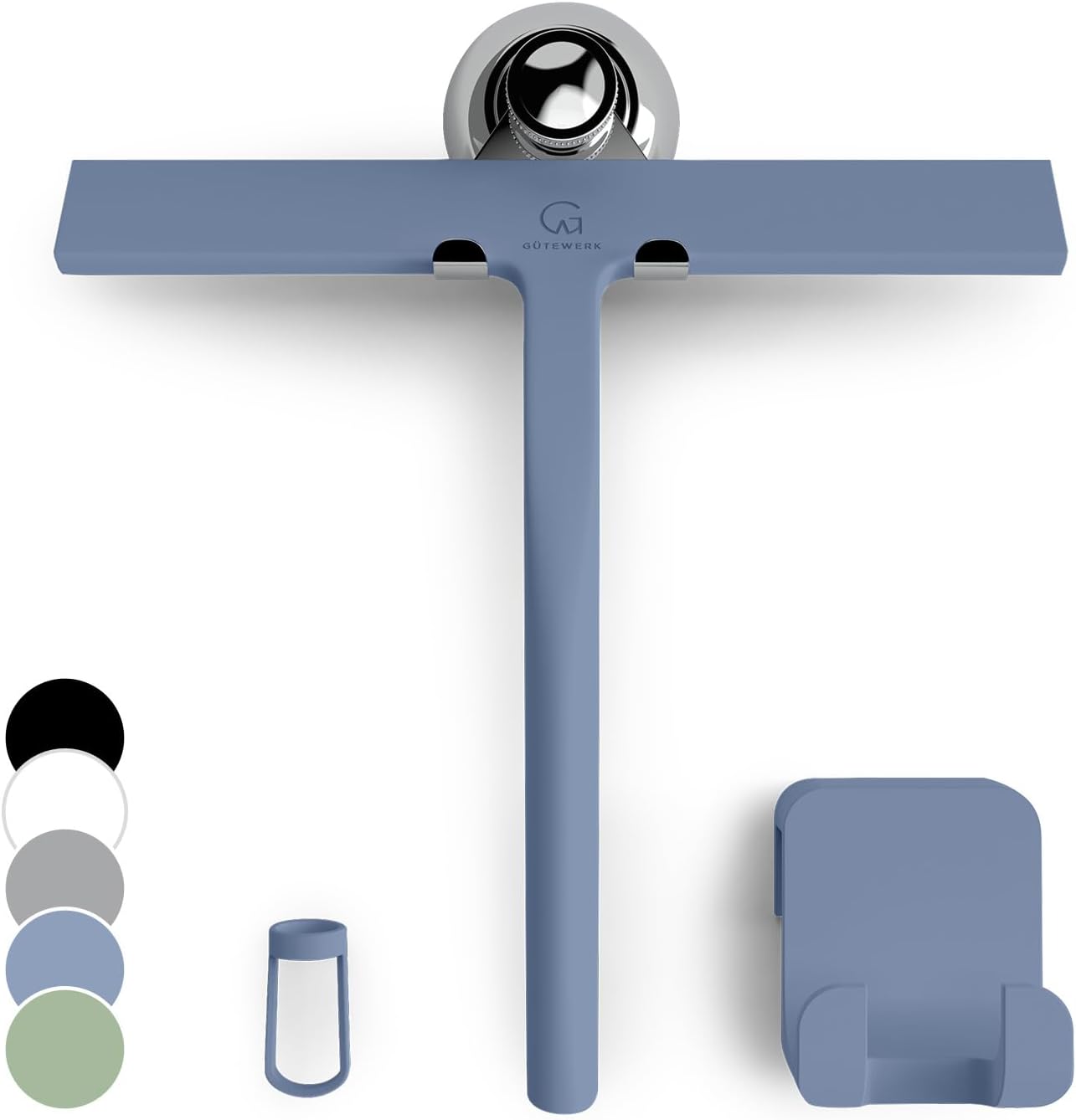 GÜTEWERK Shower Squeegee for Glass Doors, Silicone Window Squeegee, Bathroom and Glass Cleaning - Blue - 9 Inch