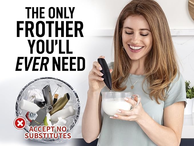 - MAKE RICH, CREAMY FROTH IN SECONDS: This electric milk frother has got your back when you're in a rush and still need a perfect coffee. It is built with a 13,000 RPM moton and 25 spiral rings to add that velvety richness to your drink in seconds. Save a trip to a coffee shop and make the best latte, cappuccino, macchiato, hot chocolate, or matcha at home with this milk foamer.