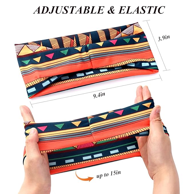 African Headbands Wide Head Wraps for Women Boho Turban Head Bands for Lady Large Sport Workout Stretchy Non-Slip Hair Bands,Pack of 8