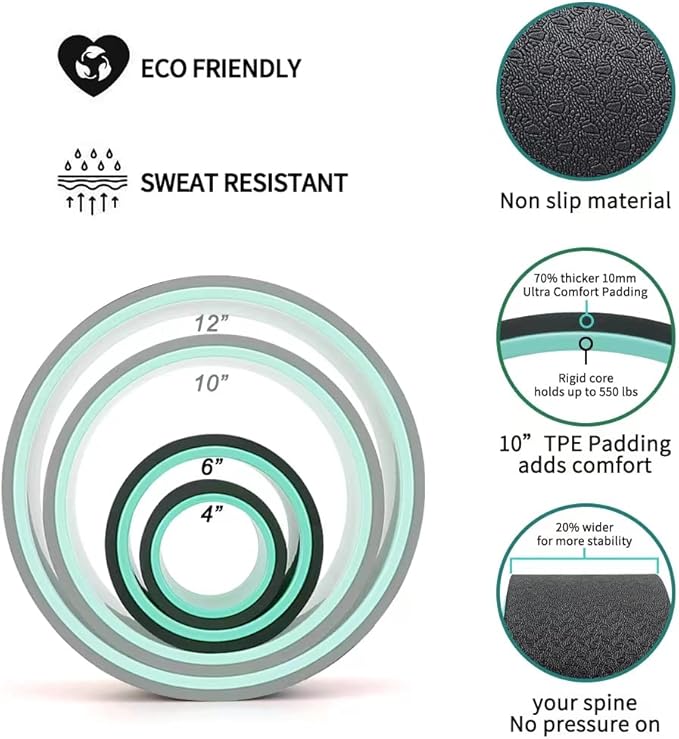 - Widen Padding: Extra wide padding improves your balance when you doing Yoga posture. This yoga wheel is perfect for more difficult stretches, helping your neck, spine, shoulders and making your yoga moves deeper. Your body will be stretched smoothly, and you'll be surprised when you finally gain flexibility and comfort.